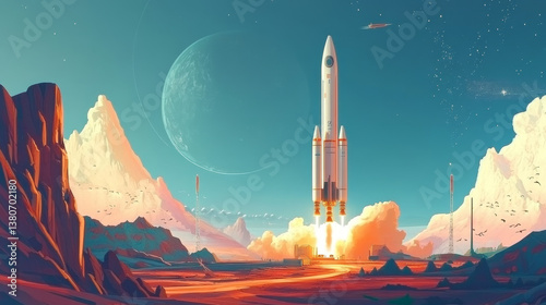 Fototapeta premium Space rocket launch, Rocket product cover, Startup creative idea, Vector...
