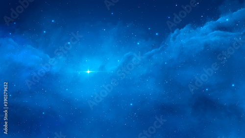 © Space Creator, Naklejka premium Space scene. Clear neat blue nebula with stars. Elements furnished by NASA. 3D rendering