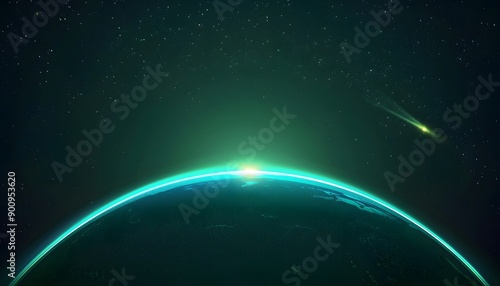 © irawan, Fototapeta premium Space scene. Green nebula with planet