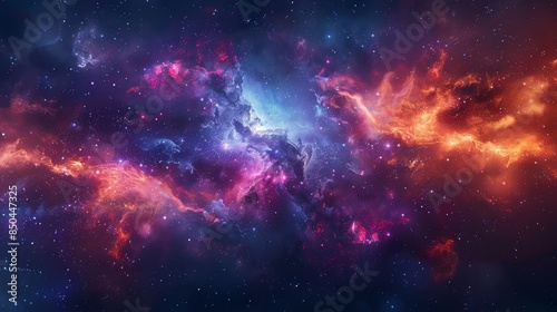 Fototapeta premium Space scene, interstellar nebula, glowing colors, starry background, high...