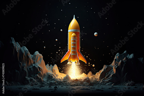 © Liliia, Obraz premium space shuttle in start. Rocket taking off into the sky. rocket launch isolated on black background