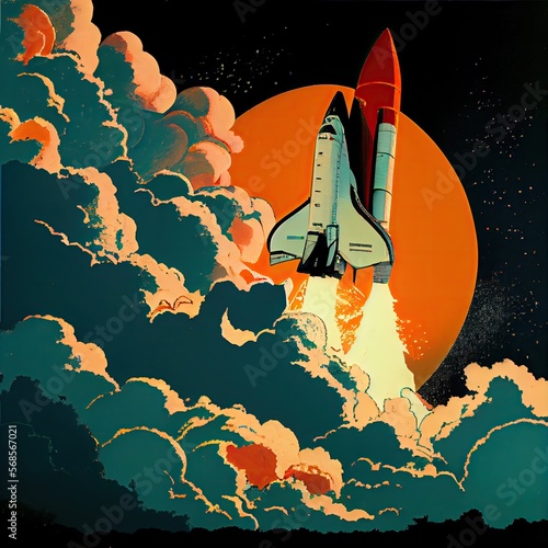 Obraz premium Space shuttle launch, colorful, abstract colors