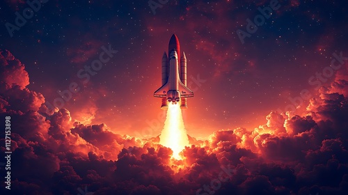 Fototapeta premium Space shuttle launch silhouette against a fiery rocket gradient