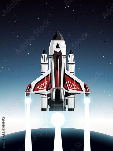Obraz premium space shuttle launching from earth to other planet