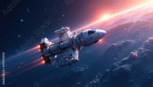 © เดือน สุขทั่วญาติ, Obraz premium Space station floating in zero gravity with a stunning white galaxy background, futurism, technology, zero gravity