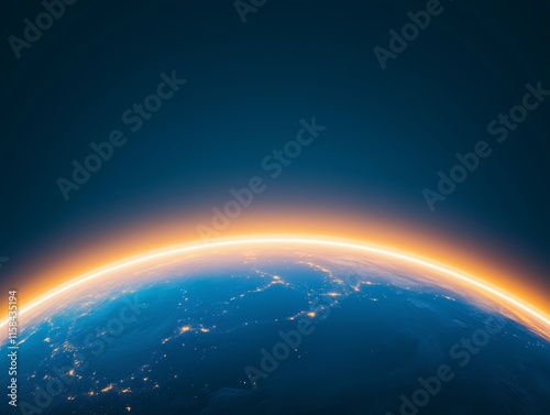 Obraz premium Space View of Earth Dawn With Bright Atmospheric Rim and Continental Lights Representing New Day and Global Energy