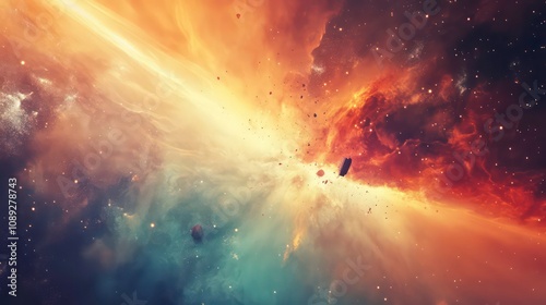 Obraz premium Spacecraft accelerating through a vibrant cosmic environment, showcasing speed