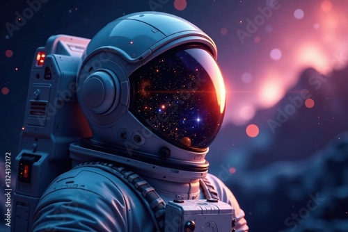 © PHOUVONG , Fototapeta premium Spacecraft and stars reflected in astronaut's helmet visor, space, spacecraft
