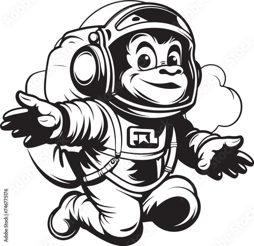 Obraz premium Spacefaring Simian Odyssey Vector Logo Galactic Gorilla Quest Black Vector Icon