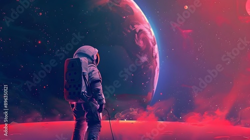 © daniel, Obraz premium Spaceman and planet: Human in space concept