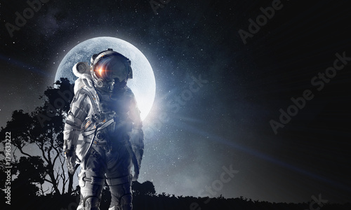 © Sergey Nivens, Fototapeta premium Spaceman in astronaut suit. Mixed media