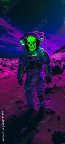 Fototapeta premium Spaceman with Neon Green Skull in Helmet: Night Adventure