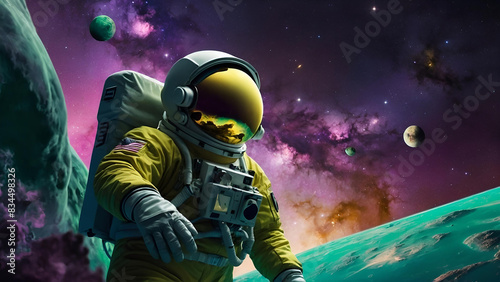 © Phiphat, Fototapeta premium spaceship and astronaut. Generative AI