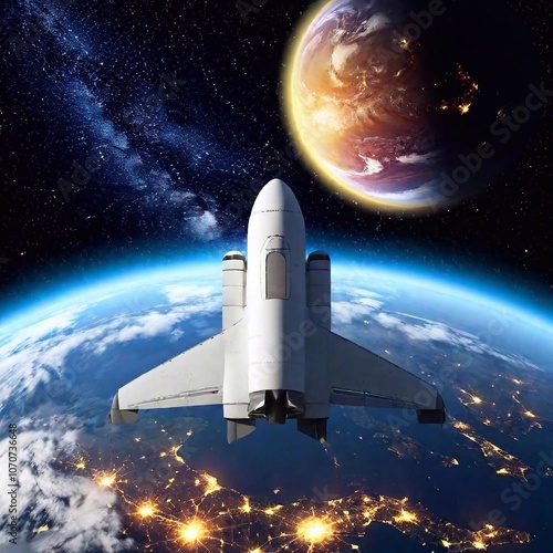 Obraz premium spaceship and earth in space. 3 d render.