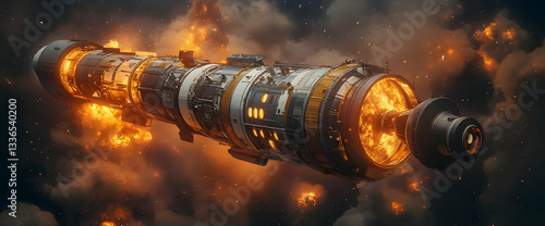 © Bayu Tri Nugroho, Fototapeta premium Spaceship Exploding in Deep Space Epic Scene of Destruction and Cosmic Mayhem Futuristic Spacecraft Demise