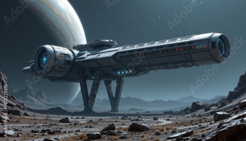 © Angelo, Obraz premium Spaceship exploration in a cosmic landscape sci-fi environment futuristic viewpoint outer space concept