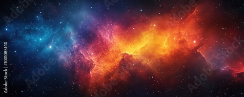 © Kedsaraporn, Naklejka premium Spaceship exploring distant galaxy, scifi, vibrant hues, digital painting
