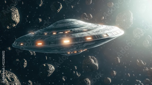 © Rere_Art151, Obraz premium Spaceship Navigating An Asteroid Field In Space