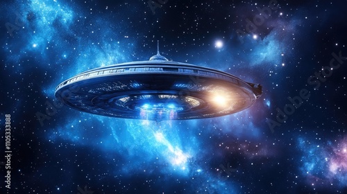 Obraz premium Spaceship with advanced shield technology activated, glowing in space
