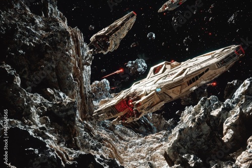 Naklejka premium Spaceships battling asteroids in deep space