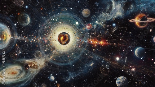 Fototapeta premium Spacetime diagrams intersecting multiverse concepts wormhole theories visualized in vibrant cosmological representations