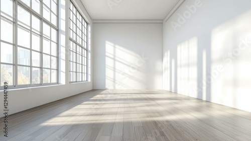 © Tuachan, Fototapeta premium Spacious and Bright Empty Room with Large Windows and Natural Light