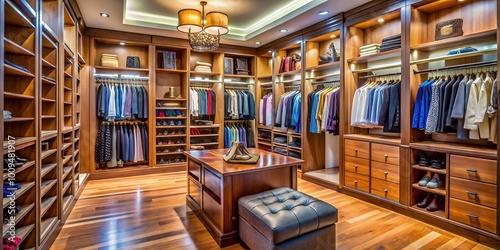 © Man888, Obraz premium Spacious and Organized Walk-In Closet with Elegant Shelving and Ample Storage Solutions for Fashion