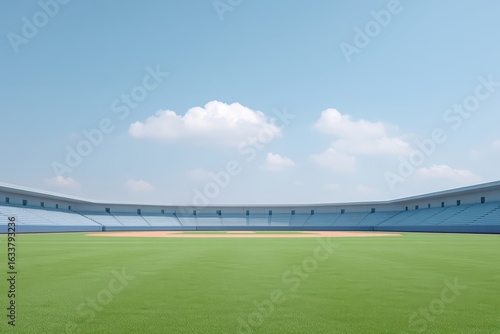 Fototapeta premium Spacious Baseball Stadium with Clear Blue Sky and Green Grass