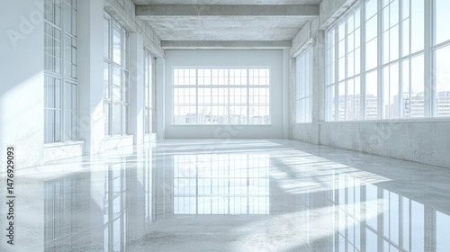 Fototapeta premium Spacious, bright loft interior with large windows.