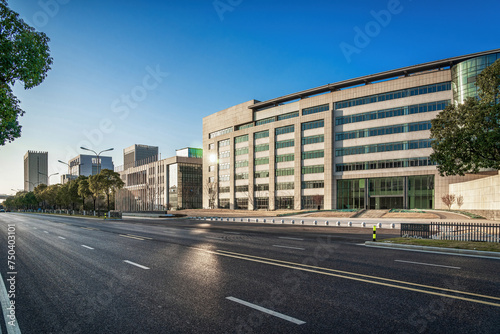 © evening_tao, Fototapeta premium Spacious City Road by Modern Buildings