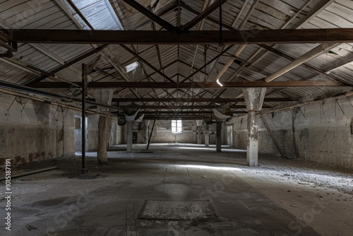 Fototapeta premium Spacious empty attic rooms showcasing fresh wall and ceiling work, inviting...