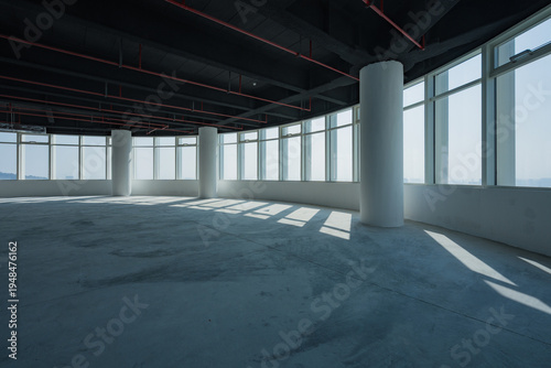 © zhu difeng, Fototapeta premium Spacious empty office interior with abundant natural light and modern architectural elements