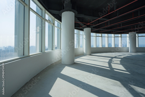 © zhu difeng, Fototapeta premium Spacious empty office interior with large windows and abundant natural light