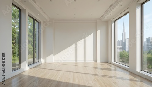 © Azhar , Obraz premium "Spacious Empty Room with Large Windows | Modern Interior Design & Architecture"