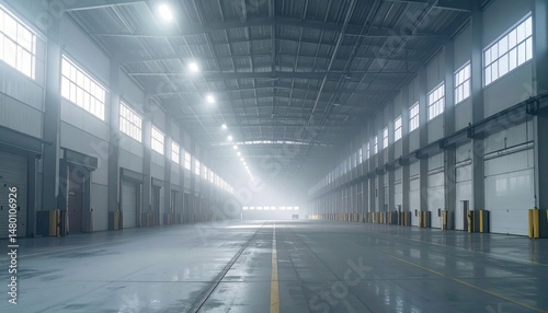Obraz premium Spacious Empty Warehouse with High Ceilings and Natural Light