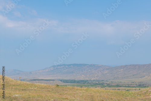 © Vyacheslav, Fototapeta premium spacious green fields and mountains in georgia in summer