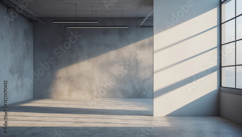 Obraz premium Spacious industrial interior with large sunlight-filled window