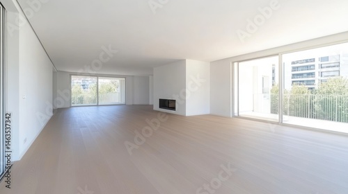 Fototapeta premium Spacious modern apartment interior empty room with large windows and natural light