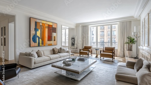 Fototapeta premium Spacious, modern living room with art and natural light