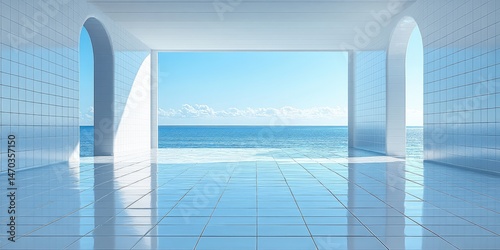© GASTAN ALVARENDRA ST, Fototapeta premium Spacious oceanfront interior design rendering