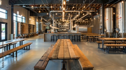 Fototapeta premium Spacious Room With Benches and Tables