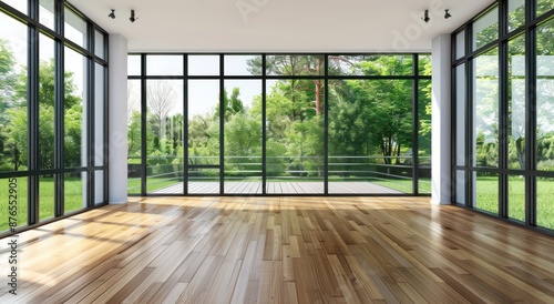 Obraz premium Spacious Room with Large Windows and Wooden Floor