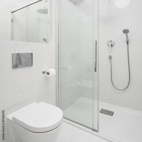 © Dariusz Jarzabek, Obraz premium Spacious shower in simple bathroom