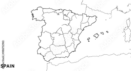 © Onisevens, Obraz premium Spain Outline Map with Regions, Vector Illustration
