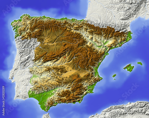 © Arid Ocean, Obraz premium Spain, shaded relief map, colored for elevation