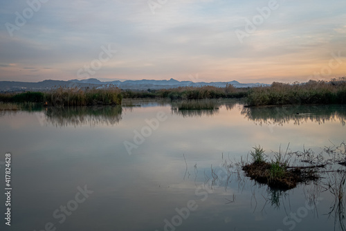 © Marlene Vicente, Fototapeta premium Spain. Sunrise in the El Hondo de Elche natural park. Alicante