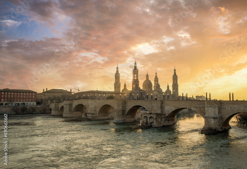 © Aytug Bayer, Fototapeta premium spain zaragoza city architecture and landscapes colorful sunset clouds and light