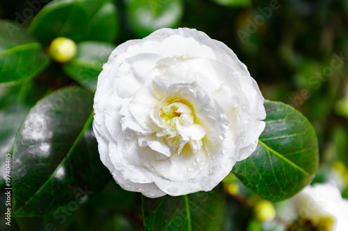 Obraz premium Spanien - Weisse Kamelienblüte im Pazo de Santa Cruz de Rivadulla