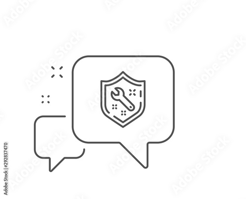 Naklejka premium Spanner tool line icon. Chat bubble design. Repair service sign. Shield...