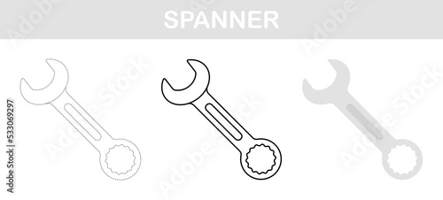Naklejka premium Spanner tracing and coloring worksheet for kids